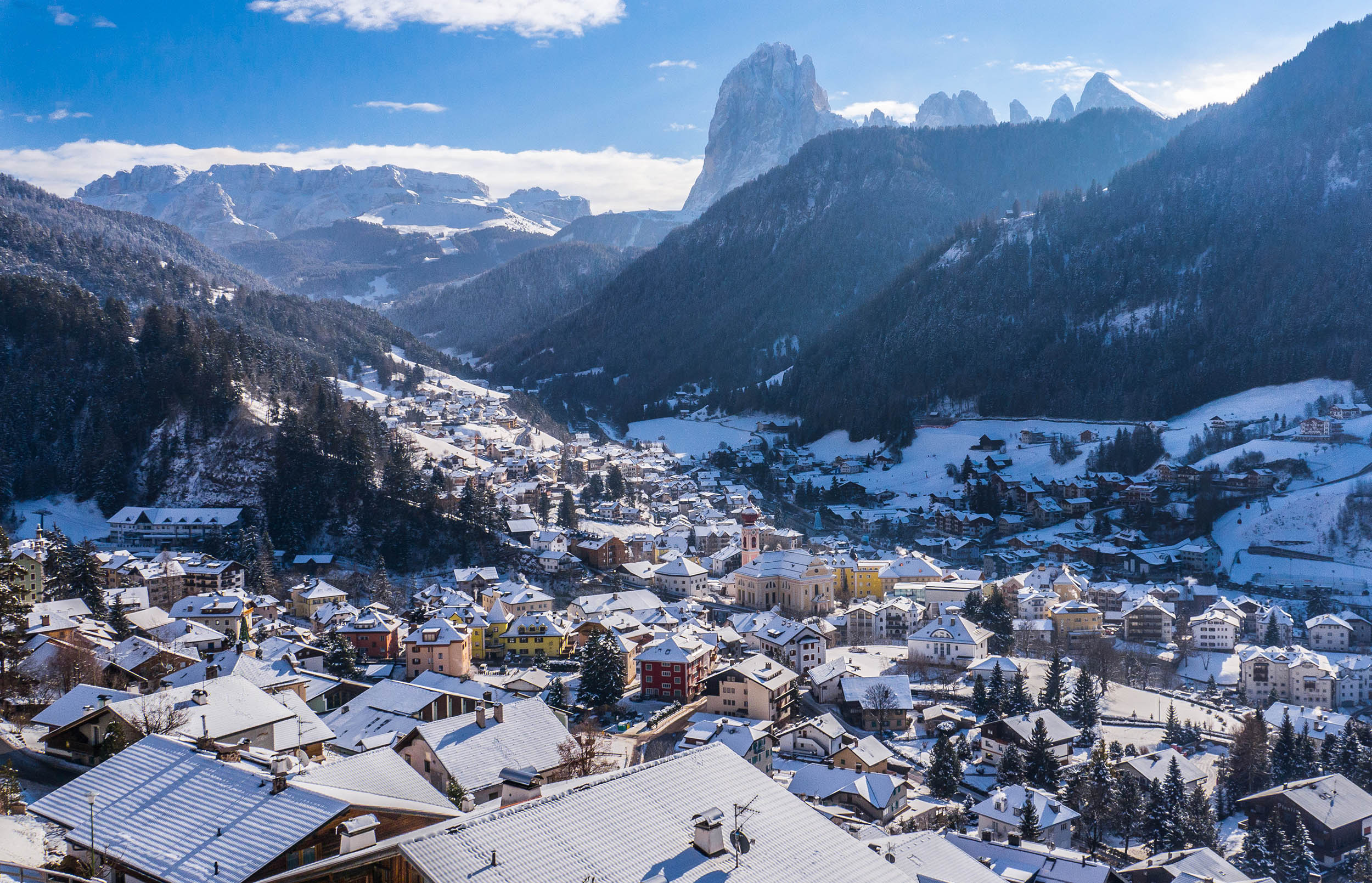 De dalafdalingen in de meeste dorpen gaan half december open. De kans op witte dorpen is in Val Gardena niet altijd even groot. Met name tussen half januari en eind februari kleurt Selva meestal wel wit. In de overige dorpen is de kans daarop kleiner.