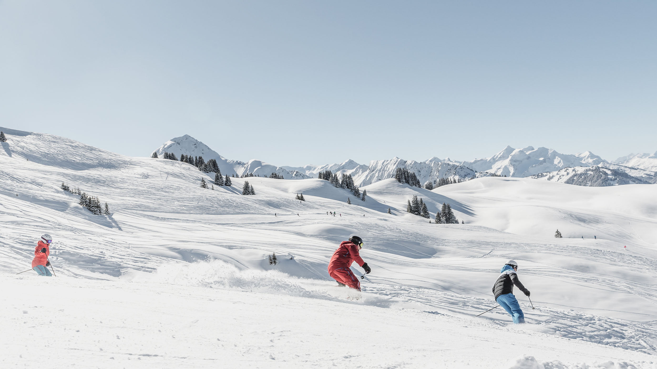 De kans op sneeuw is hier groot, zeker op de hooggelegen gletsjer bij Les Diablerets. Omdat het Saanenland, waarin Gstaad zich bevindt, in een brede vallei ligt, doet het skigebied bijna Oostenrijks aan.