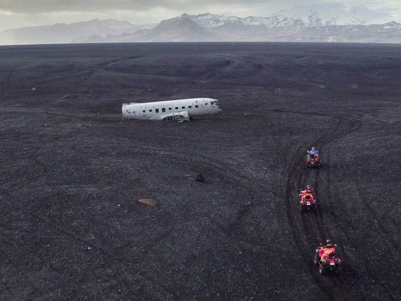Avontuurlijke quad bike tour vanaf de Barukot basis aan weg no. 222 (11 km. ten oosten van de Skogafoss). De tocht gaat over zwarte lavastranden en door kleine riviertjes naar een punt waar u prachtig uitzicht heeft over de Myrdalsjökull gletsjer en het Dyrholaey schiereiland. Vervolgens breng je een bezoek aan het beroemde DC3 vliegtuigwrak, dat in de Solheimasandur zandvlakte ligt. Dit toestel van de US Navy is hier in 1973 gecrasht.
