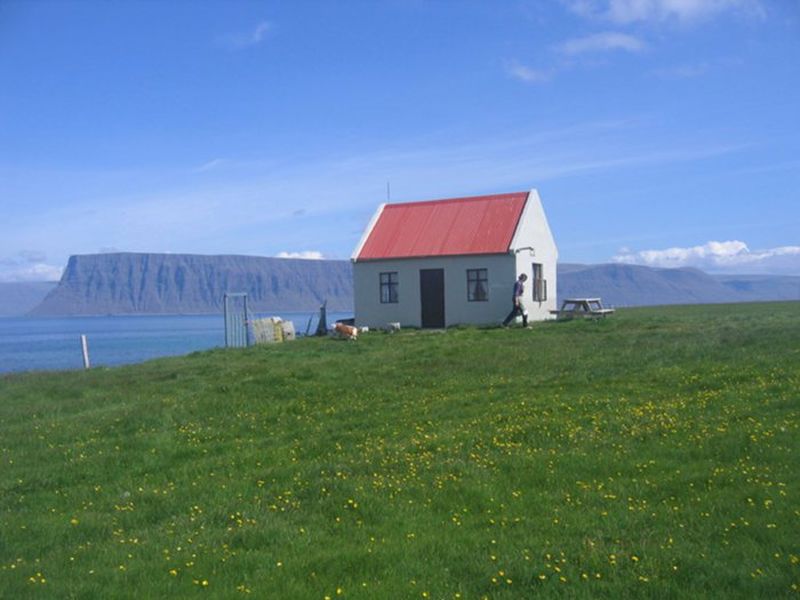 Fraai gelegen cottages in het eenzame Westfjorden gebied, vlakbij een mooi strandje en de Latrabjarg vogelkliffen * de huisjes zijn zeer rustig gelegen en bieden prachtig uitzicht over zee en de omringende bergen * er zijn 3 cottages (Steinhus, Skurinn en Kriann), die allen verschillend zijn qua inrichting * de huisjes zijn zeer eenvoudig ingericht met een eettafel en een keukentje met koelkast, kookplaat en koffiezetapparaat * geen tv of wifi * kleine badkamer met douche en toilet * Steinhus (30 m2, max. 5 pers.) ligt aan het strand en heeft een slaapzolder met 3 matrassen en een 2-persoons slaapbank in de woonkamer * Skurinn (18 m2, max. 3-4 pers.) heeft een stapelbed en een 2-persoons slaapbank (1.40 x 2.00 m) * Krian (75 m2, max.10 pers.) is het grootste huis met een aparte slaapkamer, stapelbedden en een 2-persoons slaapbank) * barbecue * bedlinnen zelf meenemen of te huur * de eigenaar runt een kleine craft-shop en organiseert begeleide wandeltochten in de prachtige omgeving * Brjánslækur, waar de ferry vanuit Snaefellsnes aankomt ligt op 75 km. afstand * de dichtstbijzijnde supermarkt is in Patreksfjörður (47 km.) * de grootste vogelrots van Europa, Latrabjarg ligt op ca. 40 minuten rijafstand * wij adviseren wel een 4×4 wagen te huren, de gravelweg naar de huisjes is vrij slecht en steil * aankomst mogelijk vanaf 16.00 uur * de inrichting van deze huisjes is erg basic en alleen een goede keuze voor mensen die voor de unieke lokatie gaan *